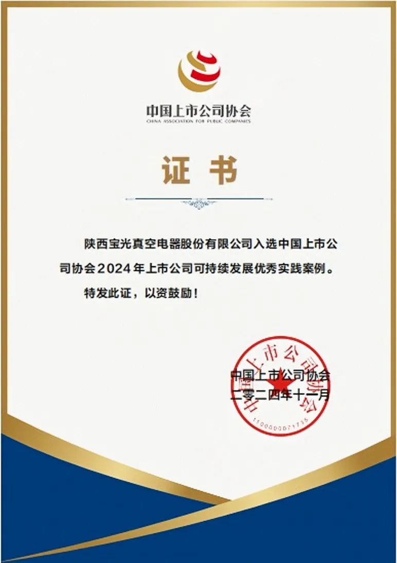 11月26日,中國上市公司協會發布“2024年上市公司可持續發展最佳及優秀實踐案例”名單,寶光股份憑借在推動生態文明建設、履行社會責任、完善可持續治理體系等方面的優秀做法,從596篇投稿案例中脫穎而出,成功入選“2024年上市公司可持續發展優秀實踐案例名單”。這是公司繼2023年入選中國上市公司協會“上市公司ESG優秀實踐案例”后,在可持續發展方面獲取的又一殊榮。這不僅是對寶光股份在可持續發展領域所做努力的認可,也是對未來發展潛力的肯定。